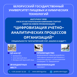 Учреждение образования "Белорусский государственный технологический университет" приглашает абитуриентов, их родителей, учителей и всех заинтересованных на День Открытых дверей 24 января 2026 года. Мероприятие проводится по адресу: г. Минск, улица Свердлова, 13 и 13а (корпус №1 и корпус №4), начало в 11:00.